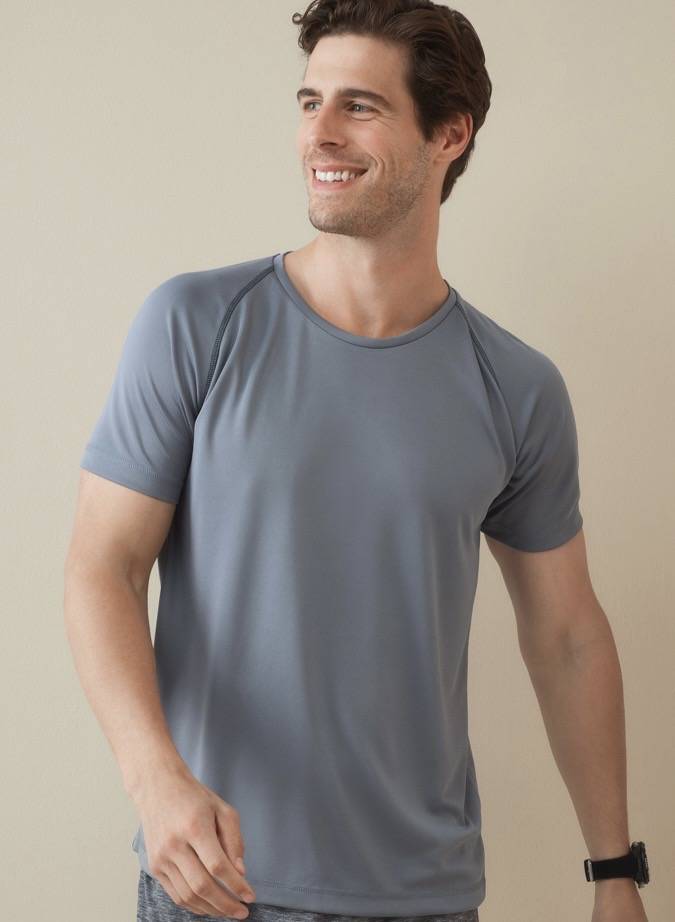 Surface lisse. ACTIVE-DRY° : matière fonctionnelle à séchage rapide avec une excellente régulation de l'humidité et respirabilité. Matière extensible. Coutures flatlock décoratives. Coutures raglan contrastées. Manches raglan. Bande de propreté contrastée. Coutures latérales. Petite étiquette de taille dans le cou. Étiquette d’entretien dans la couture latérale.
