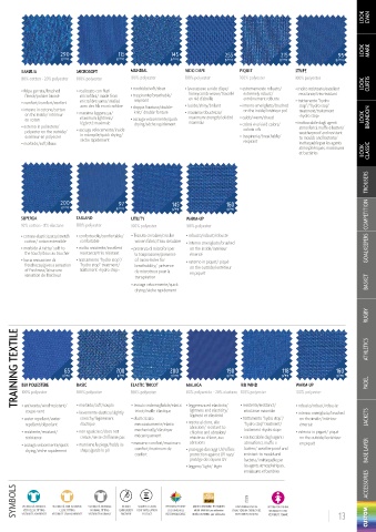 honeycomb weaving/trame • lievemente elastico/slightly 100% cotton 100% polyester 100% Recycled post-consumer 100% polyester 100% polyester 100% polyester 100% polyester 80% polyamide - 20% elastane • resistente/resistanct/ 100% polyester