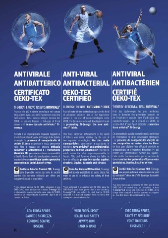 presenta il nuovo tessuto antivirale* Ti- is presenting Ti-Energy, the new anti- section R&D d’Erreà Sport présente le nouveau
