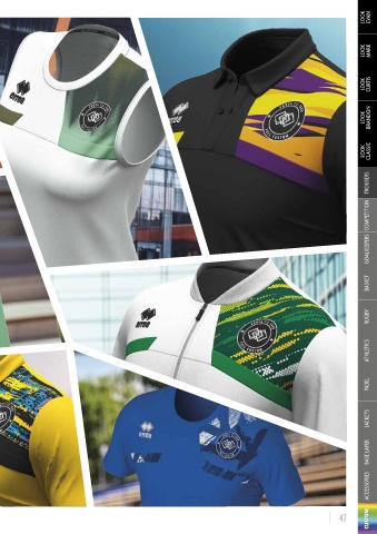 MARK MARK LOOK EVAN LOOK MARK LOOK CURTIS LOOK BRANDON LOOK CLASSIC TROUSERS COMPETITION GOALKEEPERS BASKET RUGBY ATHLETICS PADEL JACKETS BASE LAYER MARK MARK PAG. 396 ACCESSORIES 46 47 CUSTOM