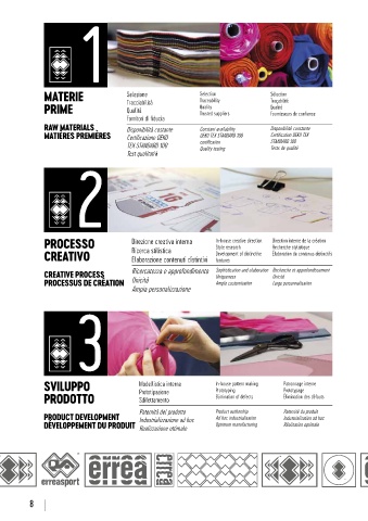 RAW MATERIALS Disponibilità costante Constant availability Disponibilité constante INDUSTRIAL TAILORING Know how sartoriale Tailoring know-how Logiciel de gestion de dernière