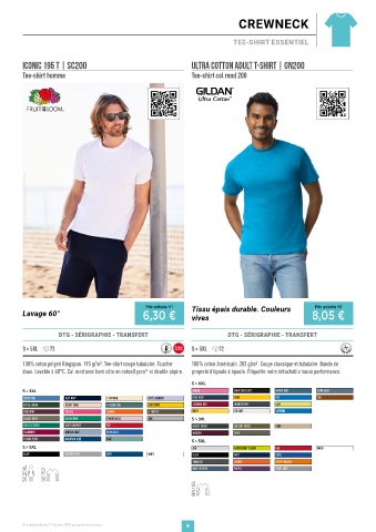 100% coton peigné Ringspun. 195 g/m2. Tee-shirt coupe tubulaire. Toucher 100% coton Américain. 203 g/m2. Coupe classique et tubulaire. Bande de