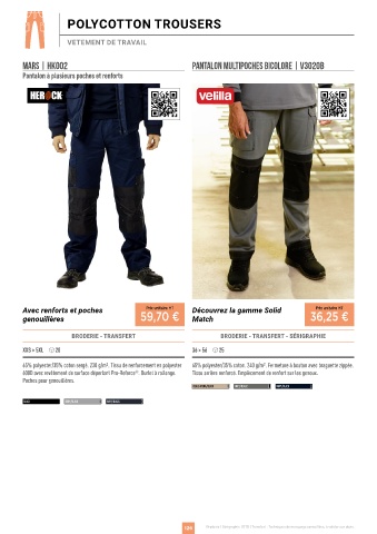 65% polyester/35% coton sergé. 230 g/m2. Tissu de renforcement en polyester 65% polyester/35% coton. 240 g/m2. Fermeture à bouton avec braguette zippée.