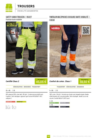 80% polyester/20% coton twill. 280 g/m2. Pantalon haute visibilité mul- 100% coton. 240 g/m2. Fermeture par bouton avec braguette zippée. Bandes