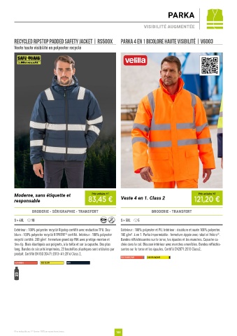 recyclé certifié. 200 g/m2. Fermeture grand zip YKK avec protège-menton et Bandes réfléchissantes sur le torse, les épaules et les manches. Capuche ca-