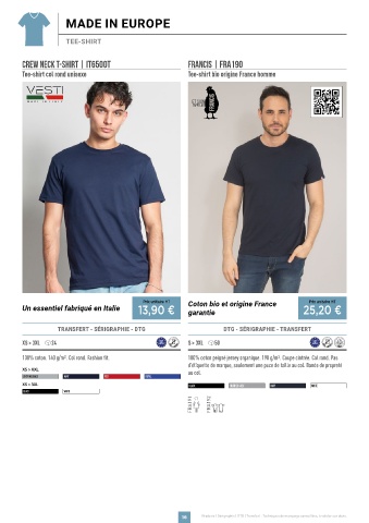 100% coton. 140 g/m2. Col rond. Fashion fit. 100% coton peigné jersey organique. 190 g/m2. Coupe cintrée. Col rond. Pas
