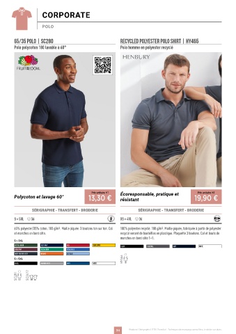 65% polyester/35% coton. 180 g/m2. Maille piquée. 3 boutons ton sur ton. Col 100% polyester recyclé. 180 g/m2. Maille piquée, fabriquée à partir de polyester