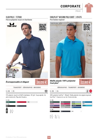 95% polyester recyclé certifié/5% élasthanne. 187 g/m2. Coupe ajustée. Col 100% polyester CoolPlus . 180 g/m2. Maille polyester micro piquée respirante