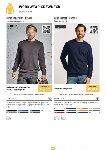 60% coton/40% polyester. 320 g/m2. Polyester avec technologie Vortex . 100% coton. 320 g/m2. Intérieur brossé. Col, taille et poignets en bords côte