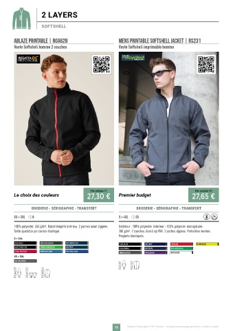 Veste Softshell homme 2 couches Veste Softshell imprimable homme