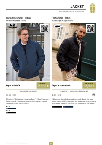 88% polyester/12% élasthanne. Matelassage DuPont™. 260 g/m2. Déperlante. 100% polyester stretch. Doublure en polyester recyclé. Blouson léger imper-