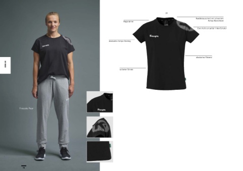 01 Rundhalsausschnitt mit schwarzem Raglanärmel Kempa-Nackenband Core-Aufdruck auf der linken Schulter elastisches Kempa-Wording elastisches Material CORE 26 taillierter Schnitt Franziska Peter 78