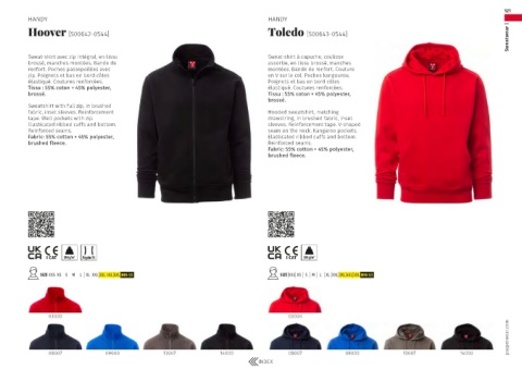 zip. Poignets et bas en bord côtes en V sur le col. Poches kangourou.