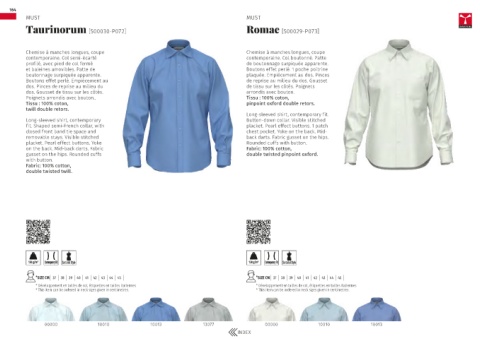* Développement en tailles de col, étiquettes en tailles italiennes * Développement en tailles de col, étiquettes en tailles italiennes