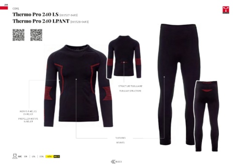 208 CORE Thermo Pro 240 LS [001527-0493] Thermo Pro 240 LPANT [001528-0493] STRUCTURE TUBULAIRE TUBULAR STRUCTURE MOTIFS À HÉLICE EN RELIEF PROPELLER MOTIFS IN RELIEF TEXTURES WEAVES SIZE S/M L/XL 2/3XL 4/5XL BIG SIZE INDEX