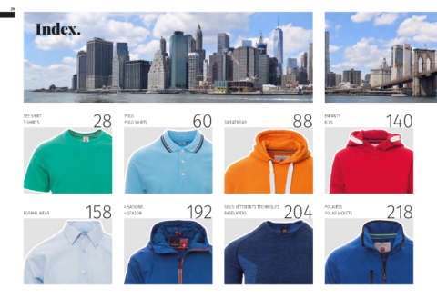 26 Index. 28 60 88 140 TEE-SHIRT POLO ENFANTS T-SHIRTS POLO SHIRTS SWEATWEAR KIDS 158 4-SAISONS 192 SOUS-VÊTEMENTS TECHNIQUES 204 POLAIRES 218 FORMAL WEAR 4-SEASON BASELAYERS POLAR JACKETS