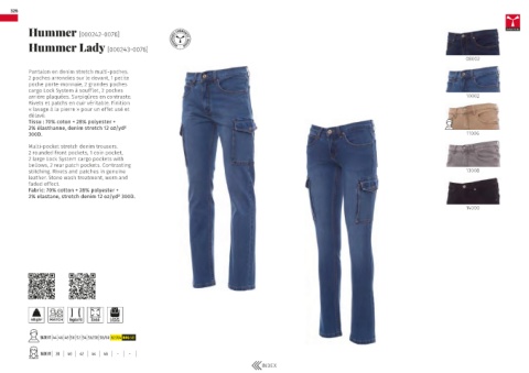 2% elastane, stretch denim 12 oz/yd² 300D.