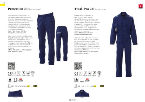 fibre, multi-pro twill. Fabric: 98% cotton + 2% dissipative