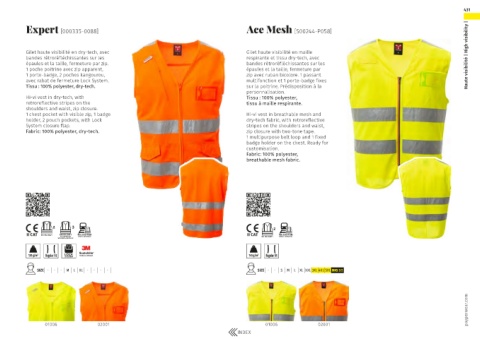 1 chest pocket with visible zip, 1 badge Hi-vi vest in breathable mesh and