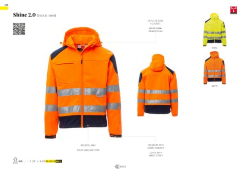 438 Shine 2.0 [S00235-0090] CAPUCHE AVEC COULISSE HOOD WITH DRAWSTRING 01014 02011 BAS RÉGLABLE POIGNETS AVEC SERRE-POIGNET ADJUSTABLE BOTTOM CUFFS WITH WRIST STRAP SIZE - - S M L XL XXL 3XL 4XL 5XL BIG SIZE INDEX