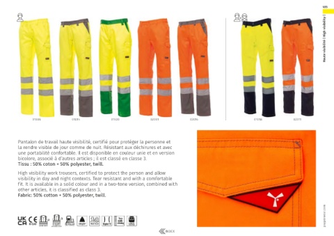 High visibility work trousers, certified to protect the person and allow