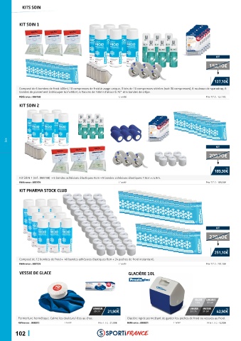 Composé de 6 bombes de froid 400ml, 10 compresses de froid à usage unique, 3 lots de 10 compresses stériles (soit 30 compresses), 6 rouleaux de sparadrap, 6