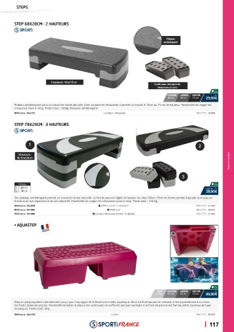 fonction de ses capacités et de ses objectifs. Possibilité de ranger les rehausses sous le step. Poids maxi : 120 Kg.