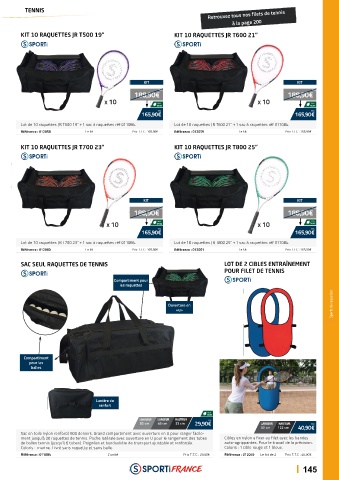 Lot de 10 raquettes JR T700 23’’ + 1 sac à raquettes réf 011084. Lot de 10 raquettes JR T800 25’’ + 1 sac à raquettes réf 011084.