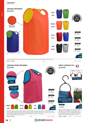 Chasuble rugby réversible 100% polyester interlock 180gr, robuste et extensible. Sa constitution (ren- transport et le stockage des chasubles. Le cro-