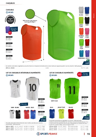 LOT DE CHASUBLES RÉVERSIBLES NUMÉROTÉS LOT DE CHASUBLES NUMÉROTÉS Disponible