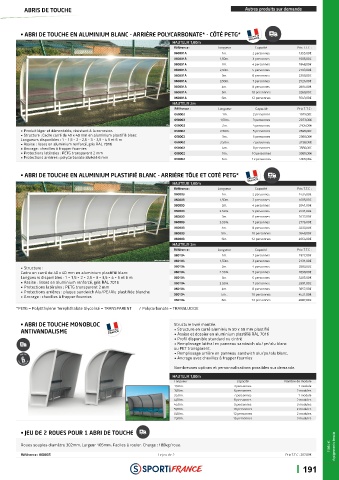 Équipement standard Réf. TG500XXX en panneau sandwich alu/pe/alu 3 mm (blanc 2 mm) | | 191