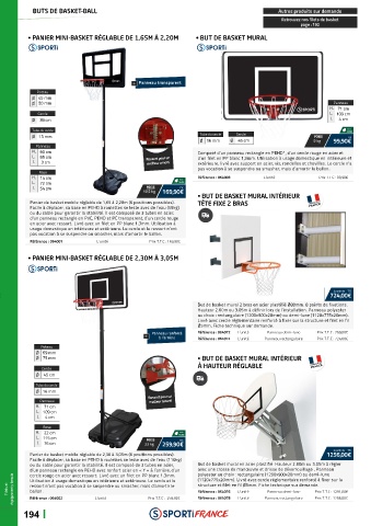 ou du sable pour garantir la stabilité. Il est composé de 3 tubes en acier, But de basket mural en acier plastifié Hauteur 2.60m ou 3.05m à régler
