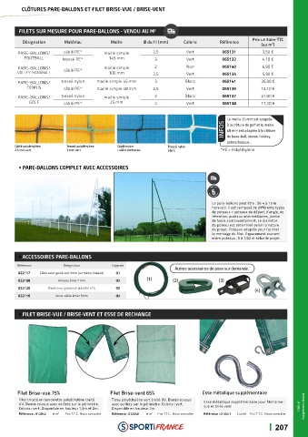 CLÔTURES PARE-BALLONS ET FILET BRISE-VUE / BRISE-VENT