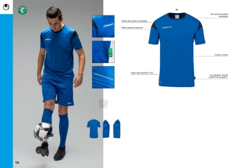 43 Col rond de couleur contrastée Inserts de couleur contrastée Griffe uhlsport imprimée Coupe unisexe smartbreathe LITE ® En polyester recyclé („FOR THE PLANET“) 14
