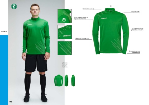 06 Col montant avec zip Design SCORE Griffe uhlsport brodée et logo sur les manches En polyester recyclé („FOR THE PLANET“) SCORE 26 smartbreathe FIT ® Emmanchures avec insert élastique 98