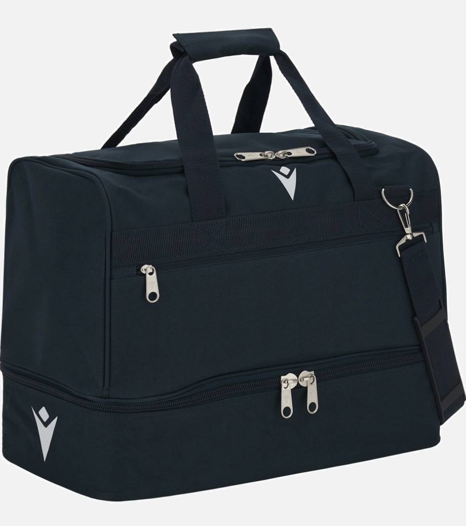 Sac avec un grand compartiment central qui s'ouvre comme une mallette pour exploiter tout l'espace disponible. Doté d'une large poche sur le devant avec fermeture à glissière et d'un fond rigide pratique pour ranger les chaussures. Poignées avec fermeture velcro et bandoulière pour le transport. Disponible en versions large et medium.