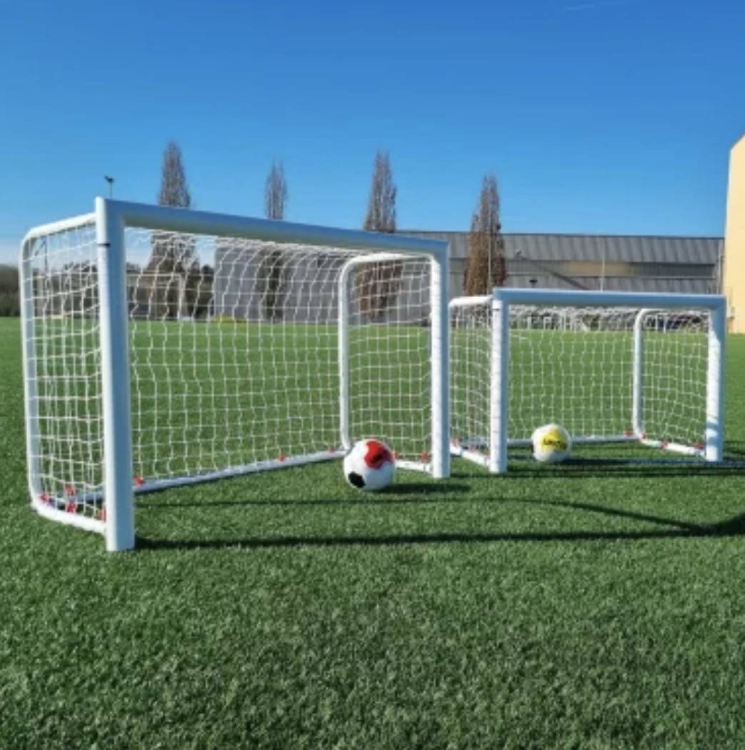Le filet (blanc PE câblé 2,5mm, maille simple 70mm avec nœuds) s’installe très facilement grâce aux clips sur le cadre et aux anneaux brisés. Livré avec des sardines en forme de U.